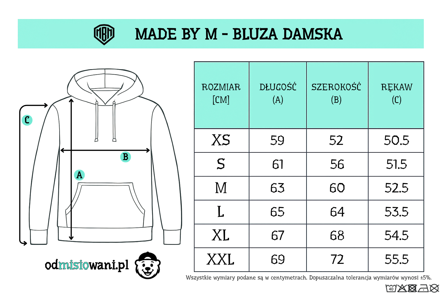 - materiał: 80% bawełna, 20% poliester o gramaturze 280g/m2,