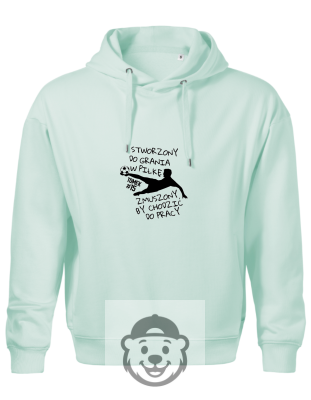 BLUZA Z KAPTUREM MĘSKA "STWORZONY DO GRANIA W PIŁKĘ ZMUSZONY BY CHODZIĆ DO PRACY" PERSONALIZACJA